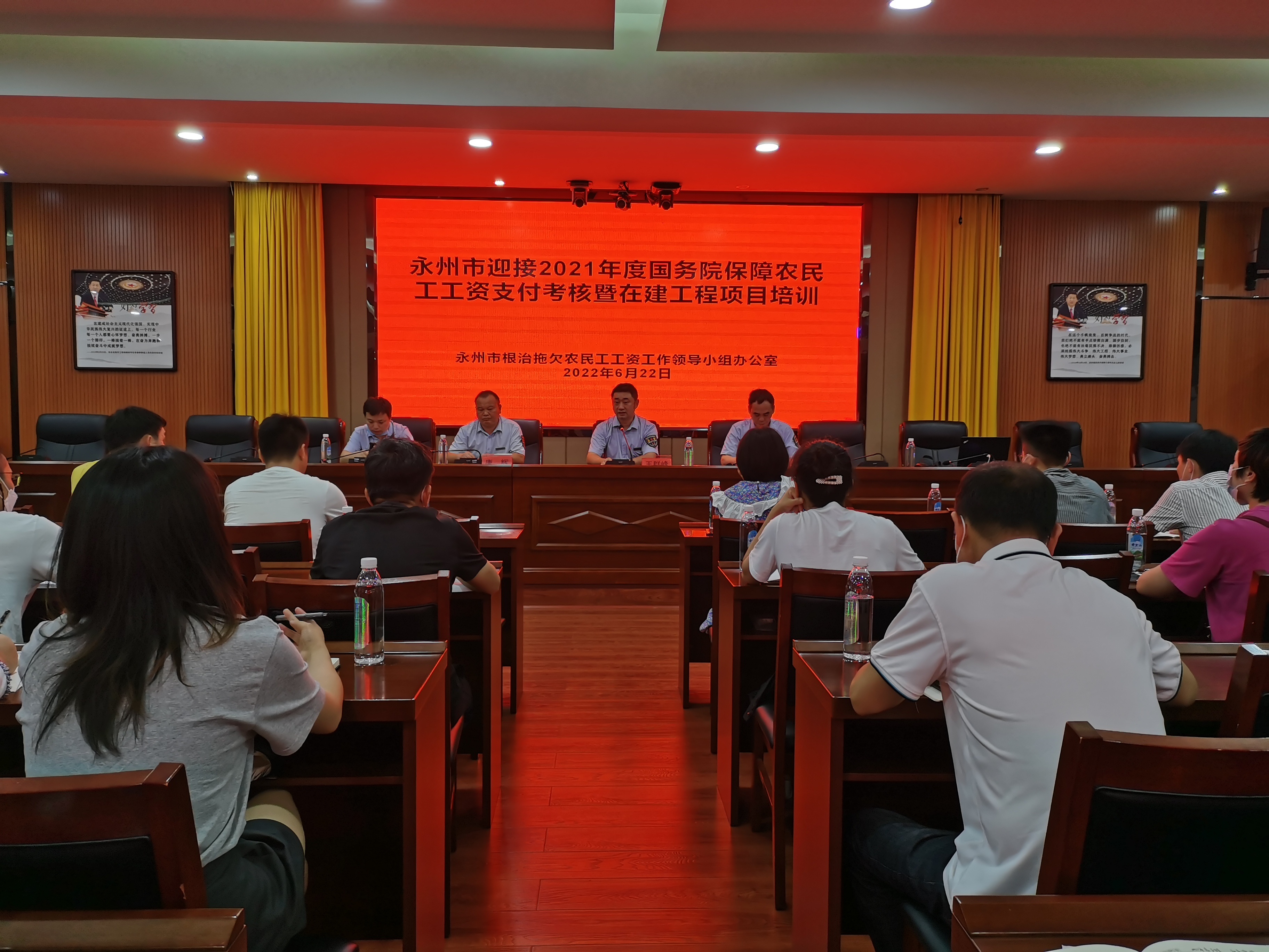 为深入贯彻落实《保障农民工工资支付条例》,促进在建工程项目劳动用工管理规范化,扎实推进保障农民工工资支付工作。6月22日,永州市组织召开国务院保障农民工工资支付考核迎检暨在建工程项目培训会,辖区内100多个在建工程项目负责人、工资监督员、劳资专管员及相关行业主管部门人员参加培训。